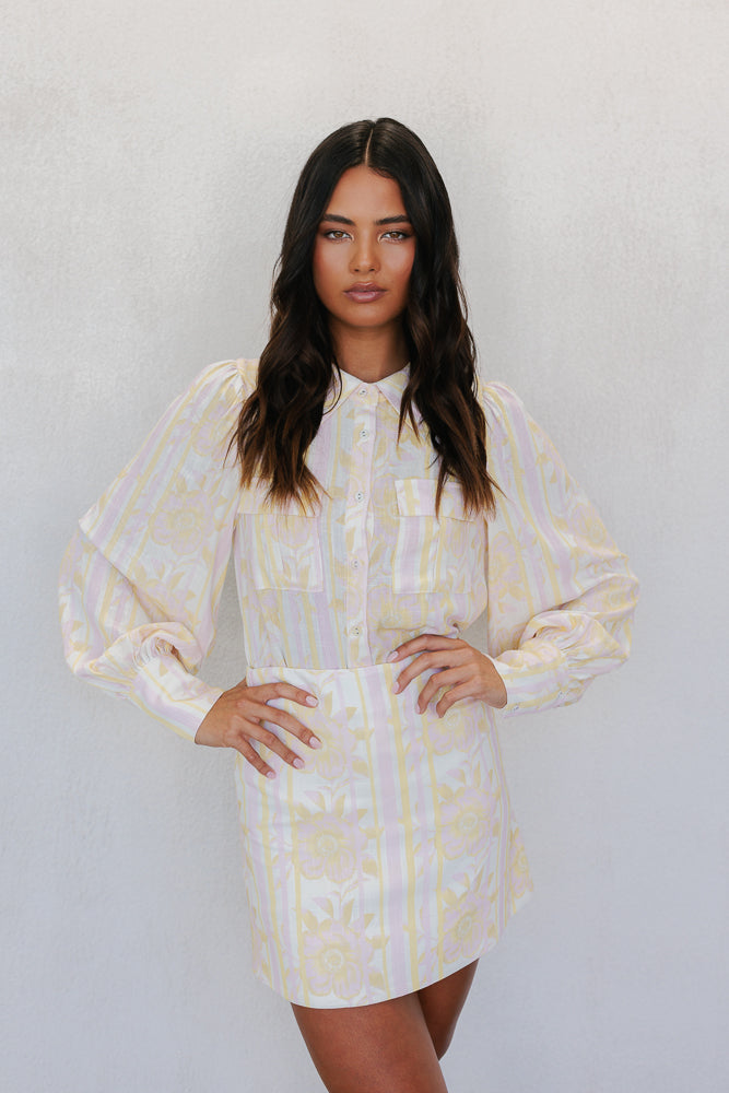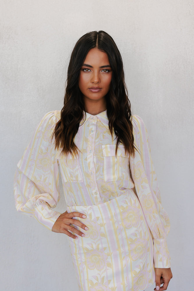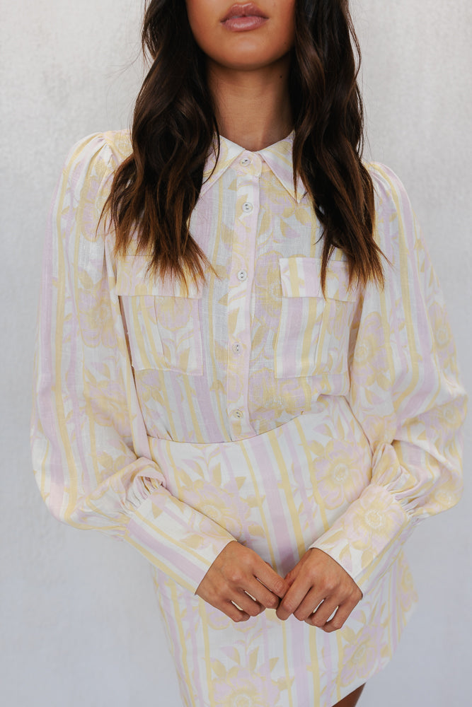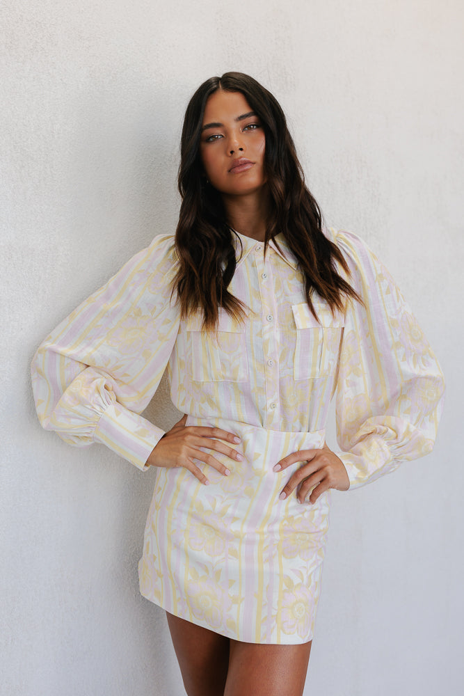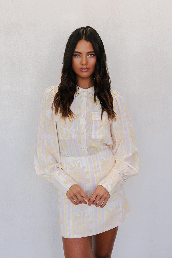 Brighten your days in our Urissa Skirt, boasting a sweet lemon + pink floral print on breezy linen. Her a-line silhouette offers versatility to style from day-to-night. Chic as it is effortless, we adore paired as a set with our Bailee Shirt.